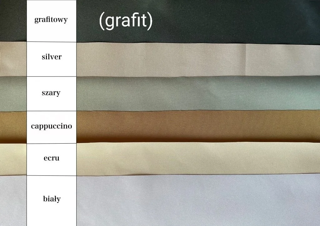 Roleta wykonana jest z tkaniny poliuretanowej. Dostępne są dwa rodzaje tkanin. Tkanina podstawowa o gramaturze 190g/m3 oraz tkanina wodoszczelna z ochroną UV o gramaturze 260 g/m3.